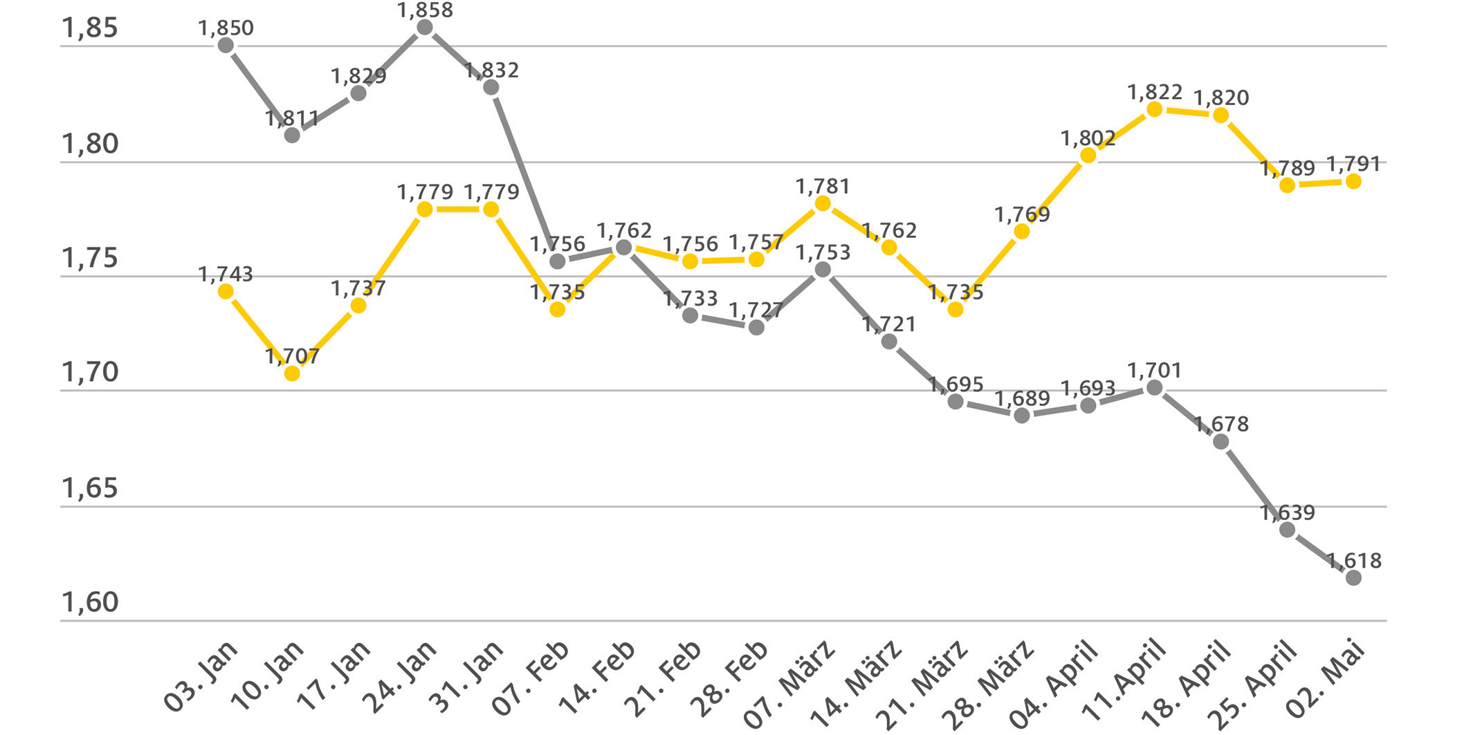 München (ots) – Die Differenz zwischen Benzin- und Dieselpreis hat sich erneut vergrößert und beträgt jetzt 17,3 Cent. Gründe für die Ausweitung des Preisunterschieds sind die leichte Verteuerung bei Benzin und der Rückgang des Dieselpreises. Laut aktueller ADAC Auswertung der Kraftstoffpreise in Deutschland kostet ein Liter Super E10 im bundesweiten Mittel 1,791 Euro und damit 0,2 Cent mehr als in der Vorwoche. Diesel ist im Wochenvergleich hingegen um 2,1 Cent günstiger und kostet aktuell 1,618 Euro.