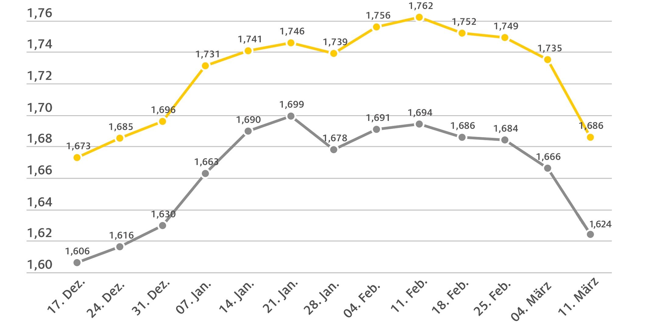 München (ots) – Tanken ist gegenüber der Vorwoche deutlich billiger geworden, die Preise beider Kraftstoffsorten sind kräftig gesunken – das zeigt die aktuelle ADAC Auswertung der Kraftstoffpreise in Deutschland. Danach kostet ein Liter Super E10 im bundesweiten Mittel 1,686 Euro und damit 4,9 Cent weniger als vor einer Woche. Der Dieselpreis ging um 4,2 Cent zurück und liegt aktuell im Schnitt bei 1,624 Euro. Damit befinden sich beide Kraftstoffpreise auf einem neuen Jahrestief. Noch preiswerter als jetzt war Tanken letztmals Ende 2024.