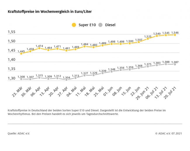 Preisstatistik: Preisspitzen von Anfang Juli unerreicht