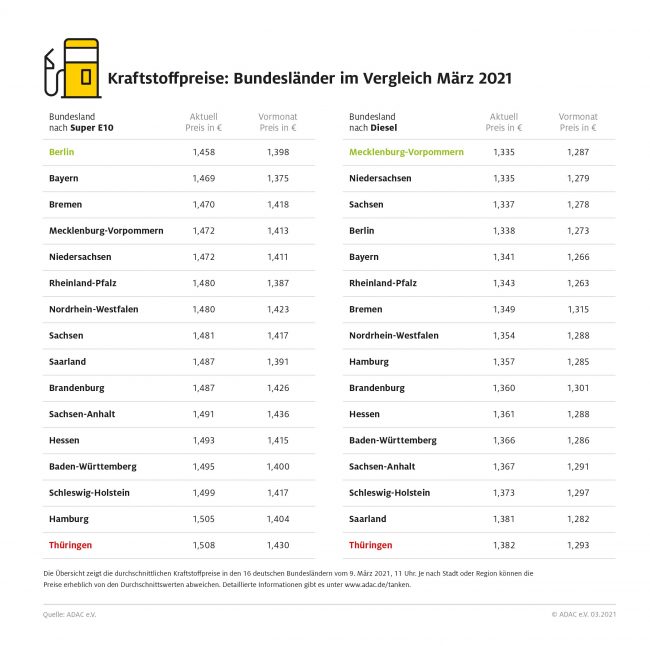 Thüringer tanken am teuersten – Benzin in Berlin am günstigsten